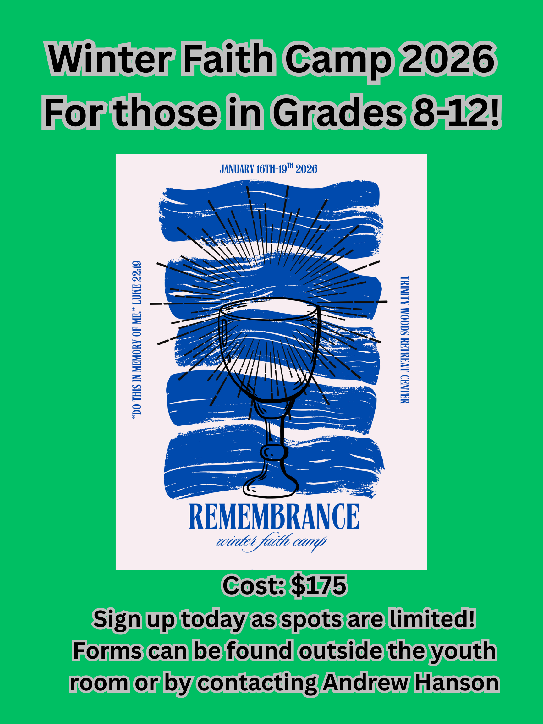 - Registration: Pick up a form by the Youth Room. Complete the form and return, along with payment, to Andrew Hansen in the Parish Office. Contact Andrew (andrewh@saint-andrew.net) with any questions.